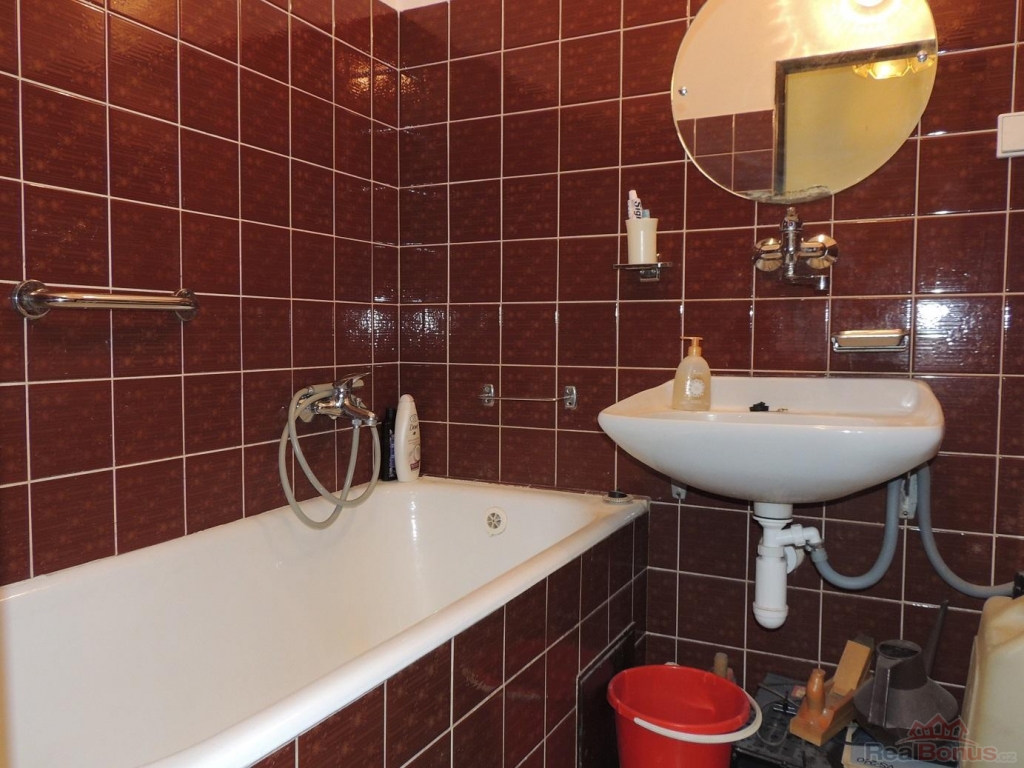 Byt je v udržovaném stavu, plastová okna, nové vinylové podlahy v pokojích s nivelační stěrkou zajišťují bezbariérový standard. Byt je vyklizený a nově vymalovaný, připravený pro nové zájemce. Samotný dům má novou střechu a vlastní plynovou kotelnu. Na střeše je umístěn zesilovač signálu od mobilního operátora, což generuje finanční zisk pro dům. K dispozici společná sušárna. Provoz bytu je pouze 4.039,-Kč včetně FO.