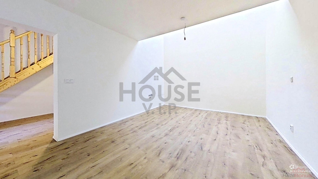 - technická místnost, vstupní hala s dřevěným schodištěm.