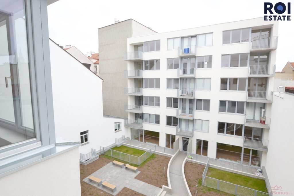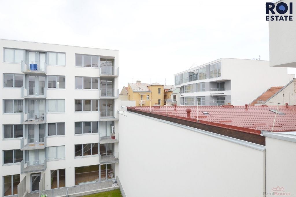Jedná se o částečně zařízené 1+1 v pátém patře domu s výtahem a výhledem do okrasné zahrady ve vnitro bloku, takže jste izolováni od ruchu města.