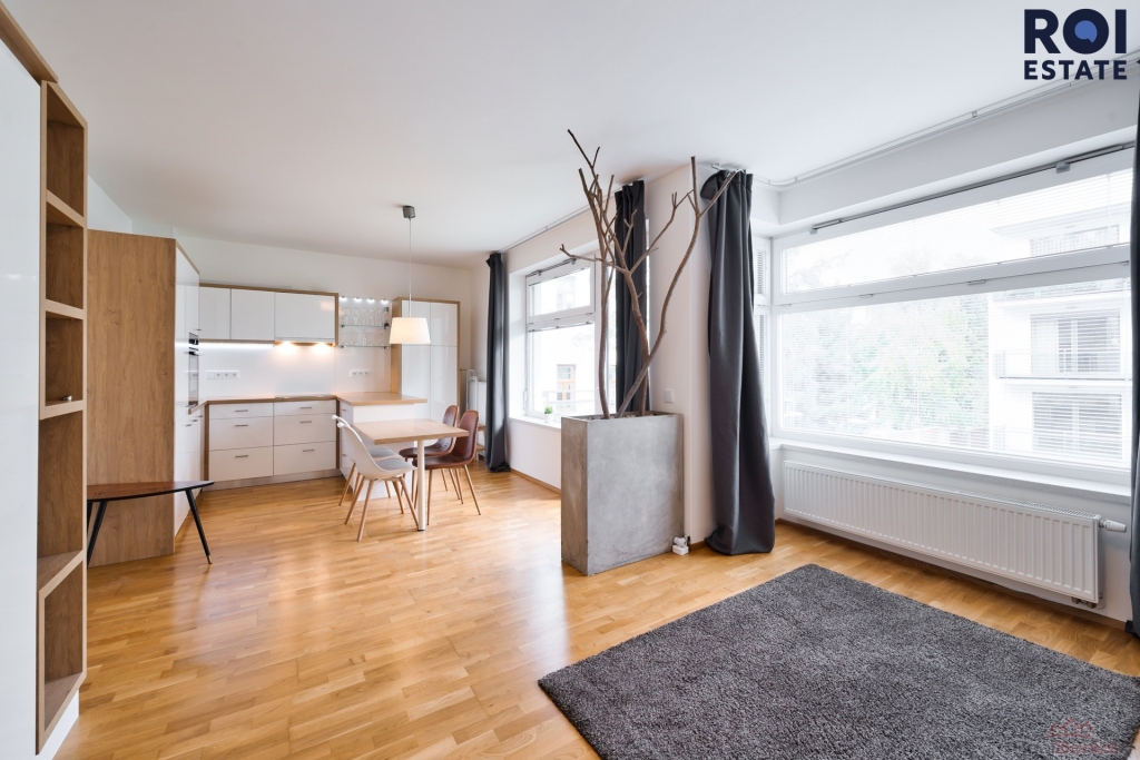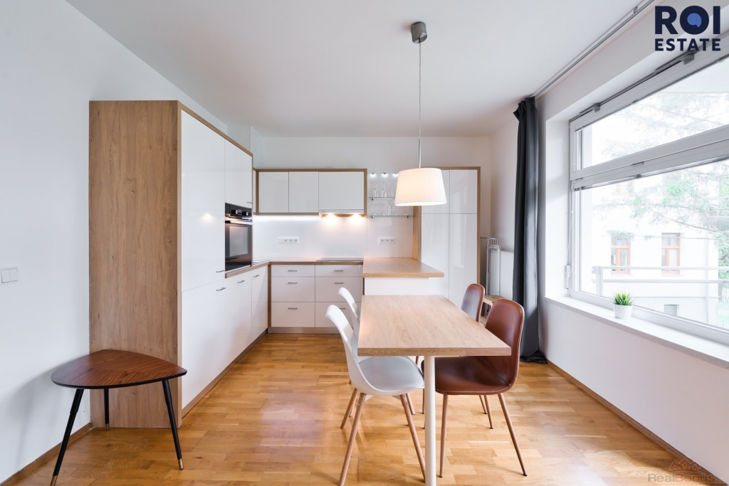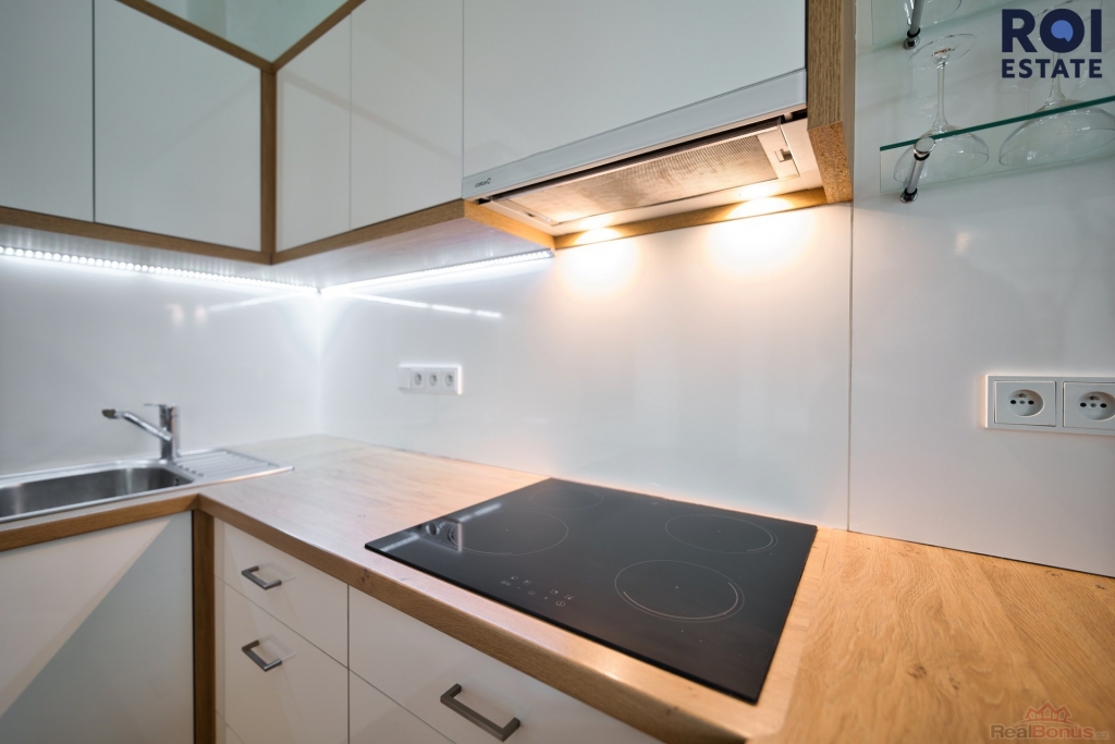 Byt se nachází v moderním domě a působí vzdušně, svěže a je kompletně zařízený. Obytný prostor se snadno přizpůsobí vašemu stylu života ? ať už toužíte po útulném koutku na odpočinek nebo praktickém zázemí pro pracovní dny. Kuchyňský kout navazuje na pokoj a vede přímo na prostorný balkon, kde si můžete vychutnat ranní kávu, večerní víno nebo jen chvilku klidu nad střechami města.