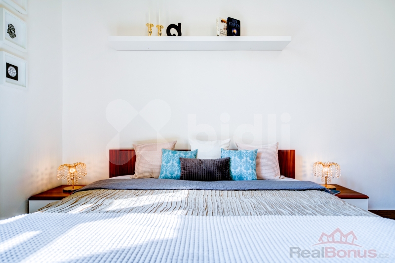 | Popis vybavení | Kuchyňská linka, myčka, pračka, lednice, sklo keramická varná deska, el. trouba s grilem, mikrovlnná trouba, kuchyňský inventář, televize, pracovní stůl s židlí, postel, skříně, jídelní stůl, židle, sedačka |