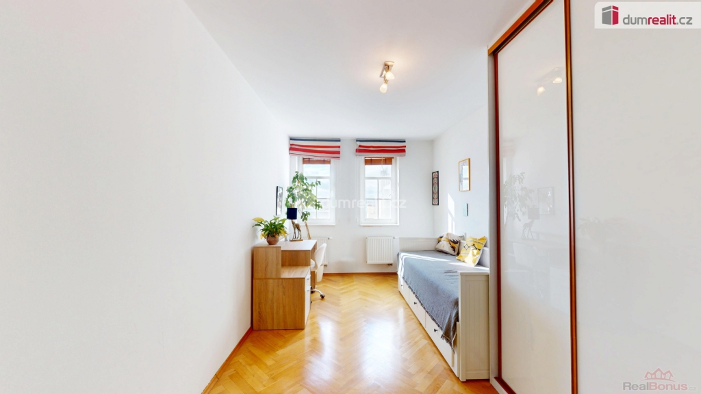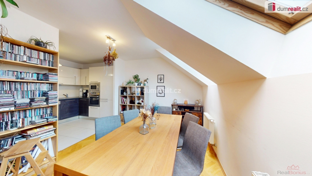 V srdci vyhledávaných Vinohrad, v jedné z nejstylovějších ulic, nabízíme k prodeji prostorný mezonetový byt 5+kk s terasou, který spojuje eleganci, funkčnost a neopakovatelnou atmosféru pražských střech. Byt se nachází v udržovaném cihlovém domě s výtahem a zaujme nejen svou velkorysou dispozicí, ale i dokonalým propojením světla, prostoru a soukromí. Vytápění je zajištěno plynovým kotlem, přičemž teplo lze dodatečně regulovat také prostřednictvím klimatizace s funkcí tepelného čerpadla. Po vstupu do bytu vás přivítá vstupní chodba, která v levé části vede do dvou samostatných pokojů a dvou koupelen jedna je vybavena vanou, druhá sprchovým koutem a toaletou. Na pravé straně se otevírá světlý obývací prostor s moderní kuchyní a jídelní částí. Kuchyňská linka nabízí dostatek pracovního i úložného místa a přirozeně navazuje na obývací pokoj, který je ideálním místem pro společná setkání či odpočinek. Dominantou obývací části je stylové schodiště vedoucí do druhého podlaží mezonetu. Pod schodištěm je chytře řešený úložný prostor, který nenarušuje estetiku interiéru. Na chodbě je k dispozici samostatná toaleta s umyvadlem. V horní úrovni se nachází komfortní ložnice s vlastní koupelnou (sprchový kout, toaleta) a samostatnou šatnou. Z ložnice je přímý vstup na terasu s panoramatickým výhledem na Prahu místo, které si zamilujete pro ranní kávu i večerní pohodu. Byt působí mimořádně vzdušně a díky své poloze v podkroví nabízí naprostý klid a soukromí, přesto zůstává jen pár kroků od oblíbených kaváren, restaurací a parků (Havlíčkovy a Riegrovy sady). Byt je v současné době pronajat spolehlivému nájemníkovi, který řádně hradí nájemné, což z nemovitosti činí atraktivní investiční příležitost. Nabízí tak možnost okamžitého výnosu z nájmu, nebo vlastního bydlení v jedné z nejžádanějších pražských lokalit. Nízký fond oprav výhodou. Více informací na dotaz u makléře nabídky. Ev. číslo: 652920. Energetický štítek: G