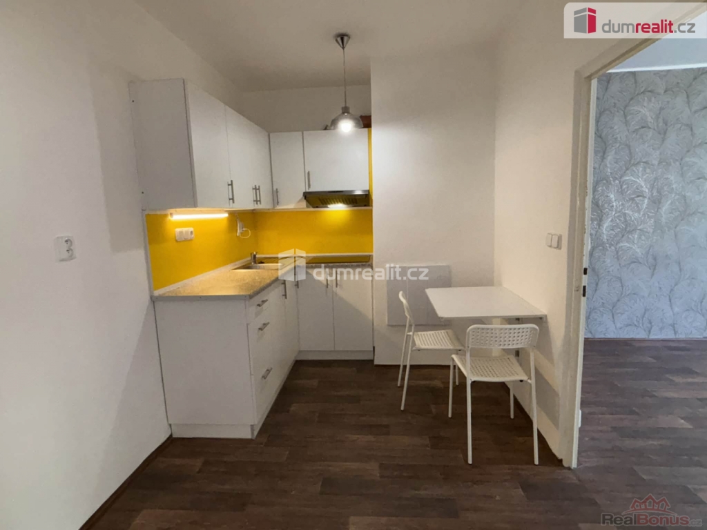 Při vstupu do bytu je menší předsíň a na ni navazuje kuchyňský kout. Kuchyňská linka je rohová , má sklokeramickou desku a digestoř.