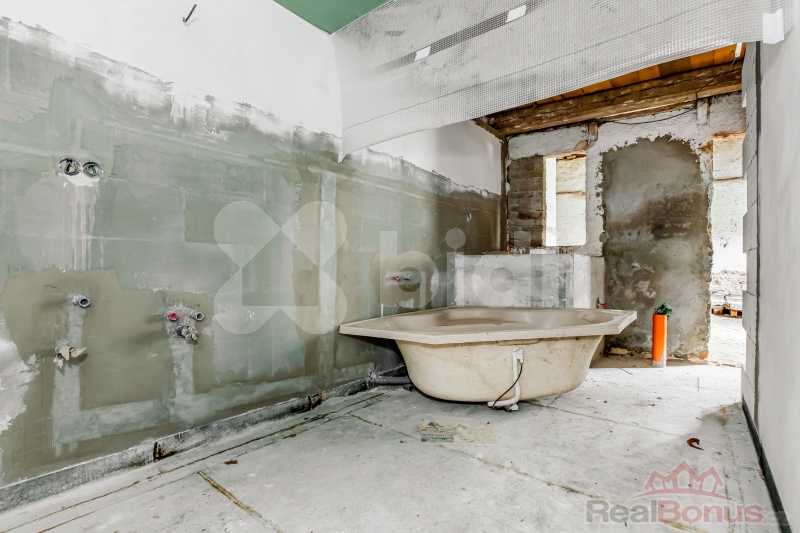 V přízemí je obývací pokoj s kuchyňským koutem, ložnice, hala, chodba, koupelna s vanou a WC. V prvním patře se nachází jedna místnost a půdní prostor vhodný k dalšímu rozšíření obytné plochy.