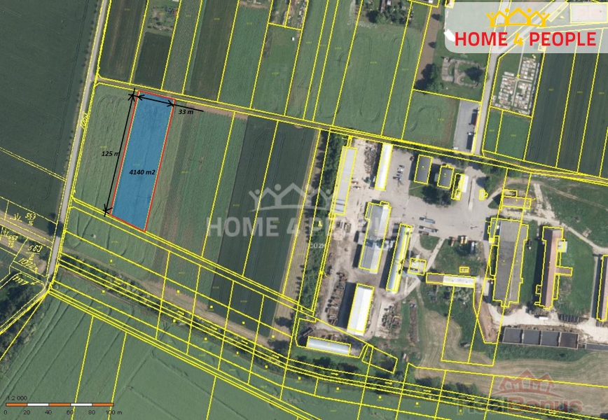 Výměra pozemku je 4140 m,šířka 33 m a délka 125 m.