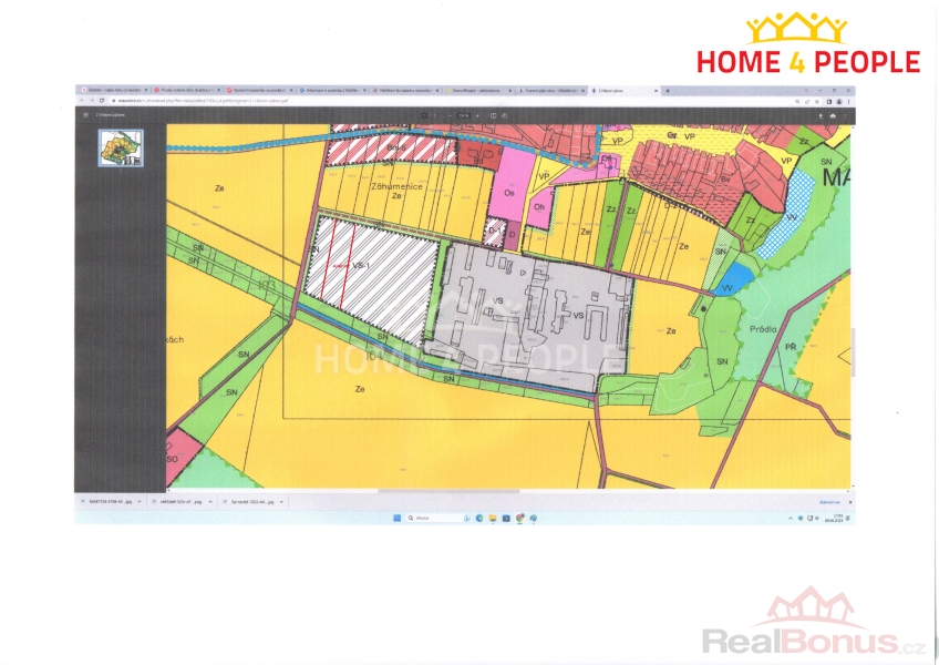 Parcela se dle územního plánu nachází v komerční zóně obce značena VS1 plochy výrobní a skladovací, v blízkosti komerčního areálu.