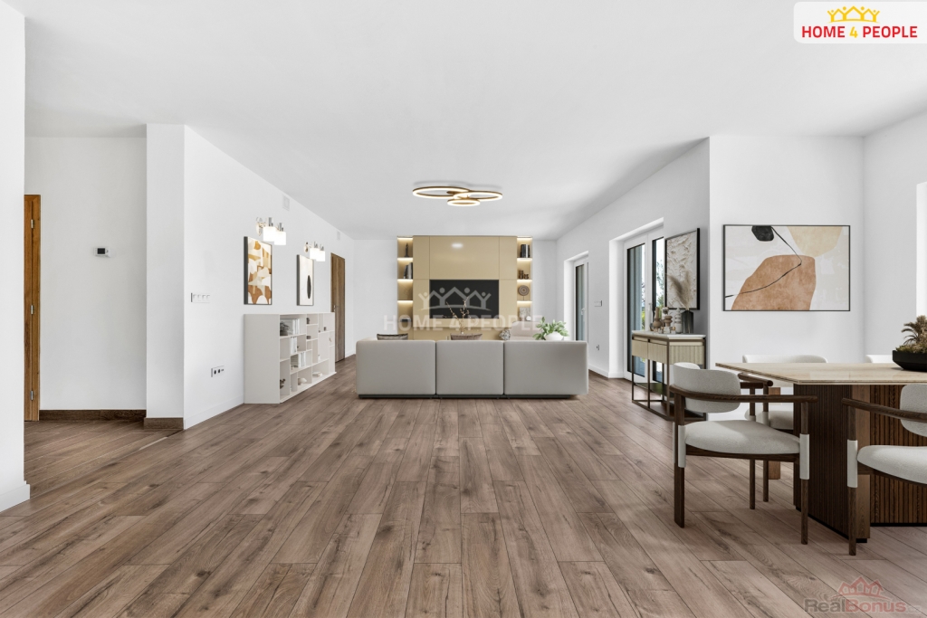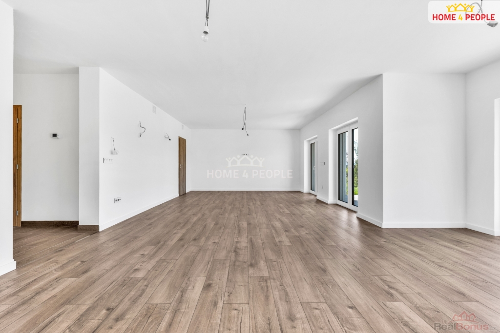 Přízemí tvoří vstupní hala (21,39m), spíž na uskladnění potravin (2,31m), technická místnost(3,26m), dva pokoje (10,26 m a 14,89m), dvě koupelny se sprchovým koutem a WC(5,78m a 4,55m) ,prostorný obývací pokoj s kuchyní(55,13m) ze kterého je vchod na velkou slunnou terasu a zahradu.