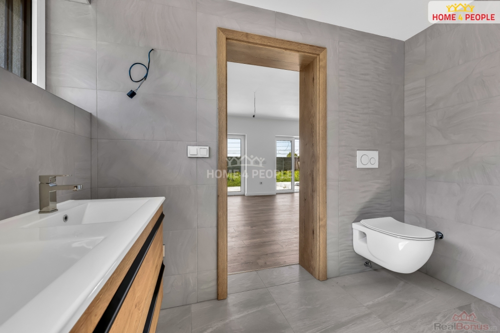 Dům je postavený z tvárnic 300 mm se zateplením polystyrenem grafitovým EPS 160mm, díky čemuž má nadstandardní tepelné izolační vlastnosti, okna jsou protihlukové opatřená venkovními žaluziemi. Nemovitost je napojena na vodovodní řád, elektřinu, a kanalizaci, má projekt na vlastní studnu. Vytápění je podlahové ,rekuperace, obložkové interiérové dveře.