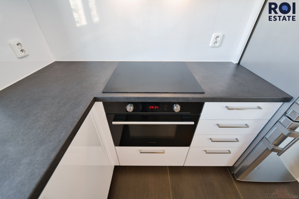 Byt o velikosti 49 m2 s balkonem 4 m2 působí velmi světlým a čistým dojmem. Obývací pokoj je propojený s moderní kuchyní ve vysokém lesku, která je vybavena vestavěnými spotřebiči včetně myčky, varné desky, trouby a lednice s mrazákem. Z obývací části je vstup na balkon s příjemným výhledem do okolí.