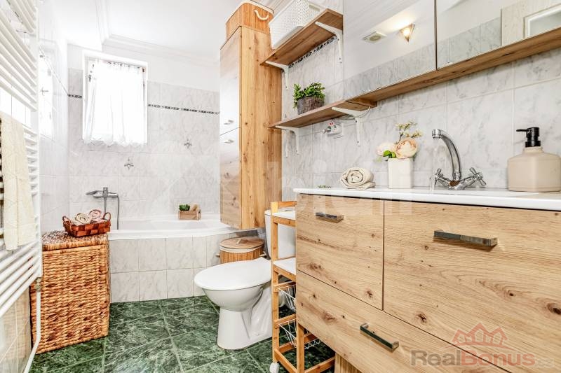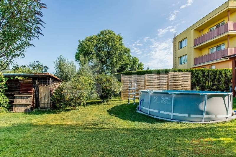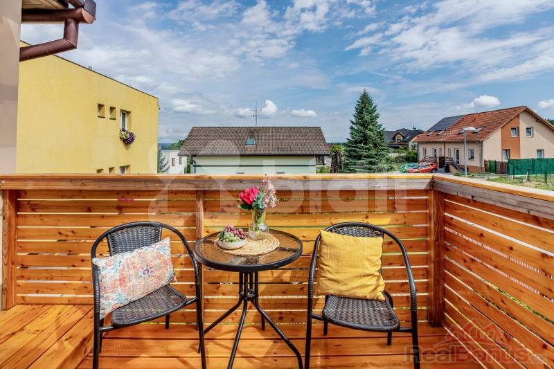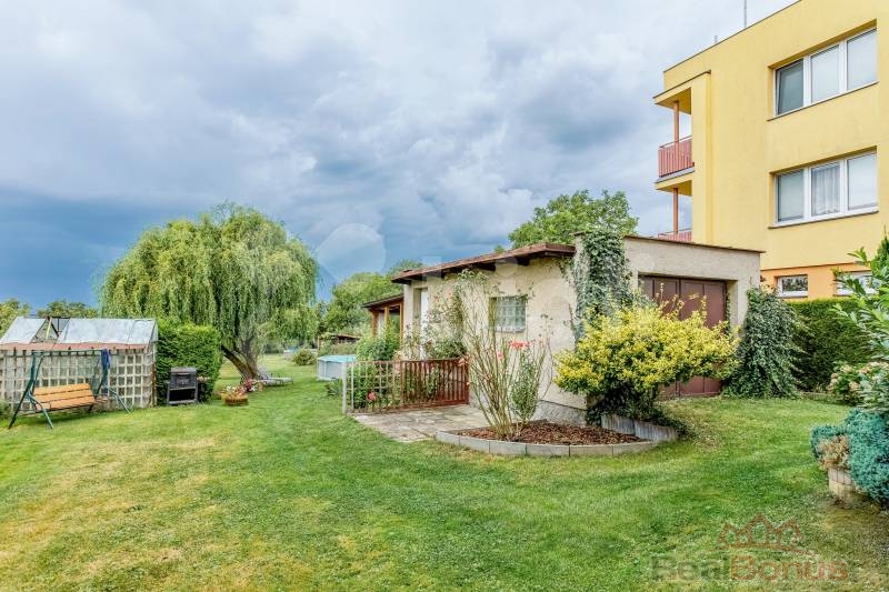 V 1. patře je balkon a v zahradě garáž (22 m2) s posezením.