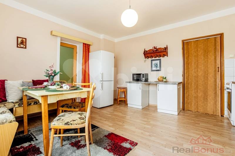 Samostatné byty o dispozici 3+1 a 4+kk, v suterénu jedna obytná místnost s chodbou a WC a další sklepní místnosti.