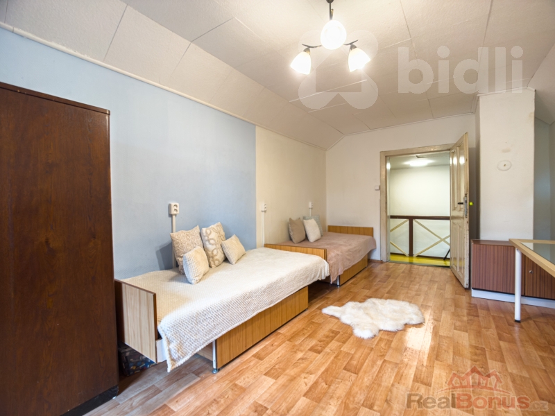 V předsíni jsou navíc funkční kamna na tuhá paliva, na kterých se dá i vařit. Nově litý beton, v obývacím pokoji a dětském pokoji nové lino.