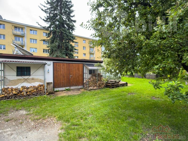 Na udržovaném pozemku se nachází garáž 35 m2, skleník, stání pro auto a vzrostlé stromy a keře.