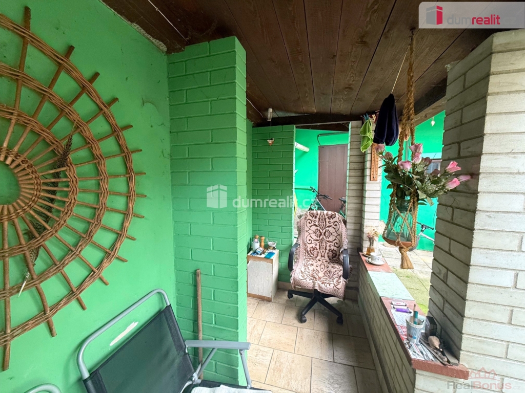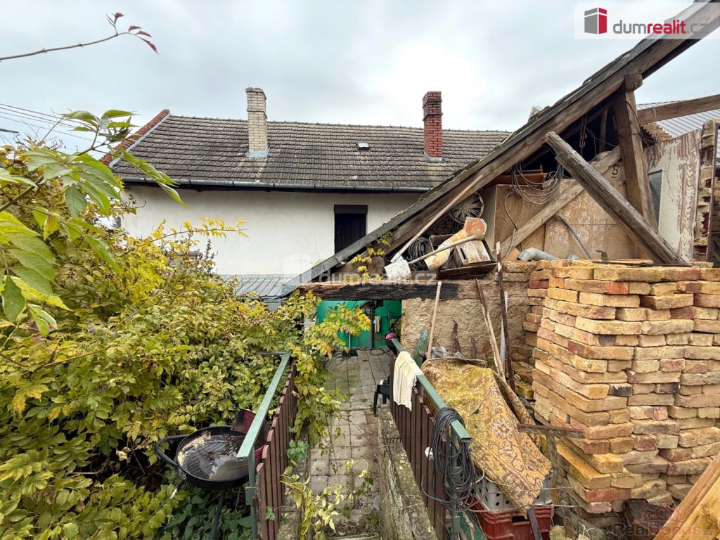 Nad dílnou je přístavek, který je potřeba znovu postavit, případně provést demolici a zvětšit si zahrádku u domu. Dvorek má velikost cca 40 m, je zde krytá terasa a posezení.