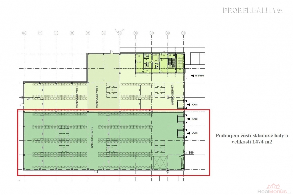 Máme pro vás jedinečnou nabídku pronájmu skladovacích prostor o ploše 1474 m2 v atraktivní multifunkční komerční zóně Logport Prague West. Tato moderní hala je ideální pro skladování a lehkou výrobu. Rozměr části haly určené k pronájmu je 60,7 m x 24,28 m, výška stropu je 10 m, nosnost podlahy je 5 000 kg/m2.