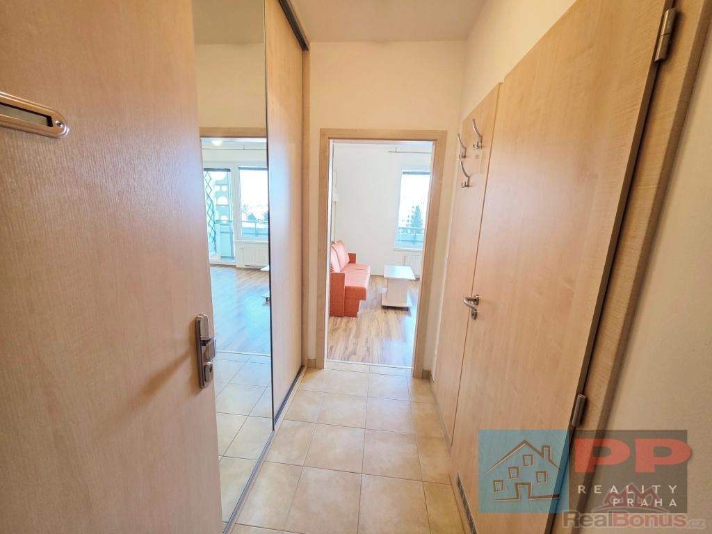 Orientace oken a balkonu je na západ. Ve vstupní chodbě je šatní skříň na míru, která poskytuje dostatek úložného prostoru. Obývací pokoj je vybaven sklápěcí postelí, což efektivně šetří místo. Prostorná koupelna se sprchovým koutem. V oknech jsou žaluzie.