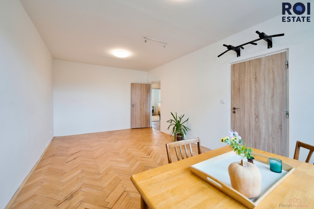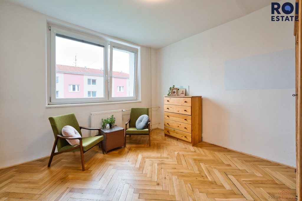 - tři samostatné pokoje, z nichž jeden je výrazně větší a díky dvojím dveřím umožňuje úpravu na dva oddělené pokoje (možná úprava dispozice na 4+1),