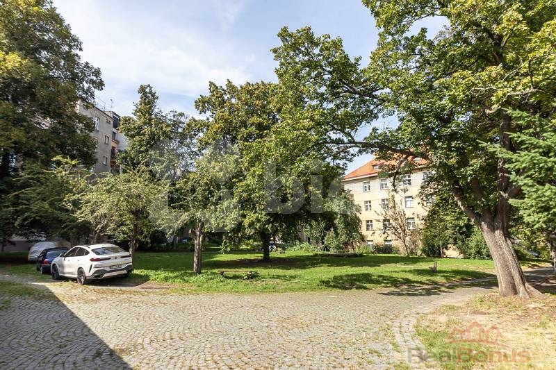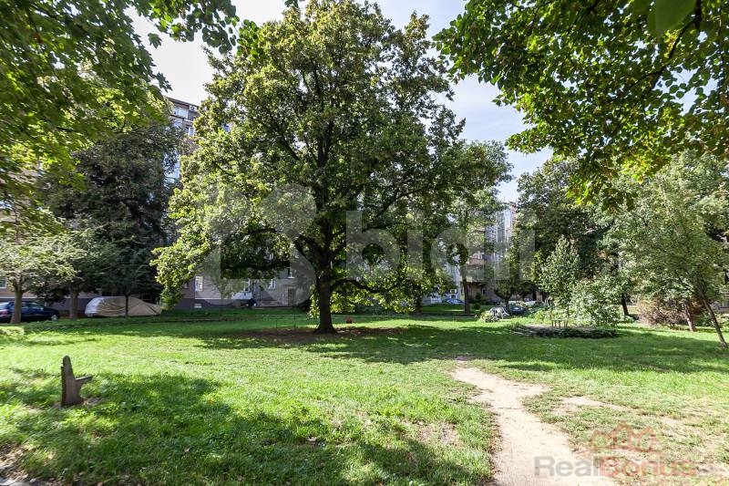 Krásný rozlehlý vnitroblok se zelení, přístupný jedině obyvatelům domů, je překvapivě klidným místem k relaxaci a vybízí k posezení s přáteli.