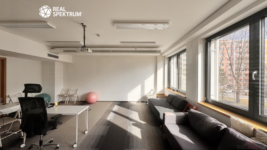 Jednotka je situována ve 2. patře šestipodlažní budovy a nabízí klidné pracovní prostředí s výhledem do zeleně areálu.