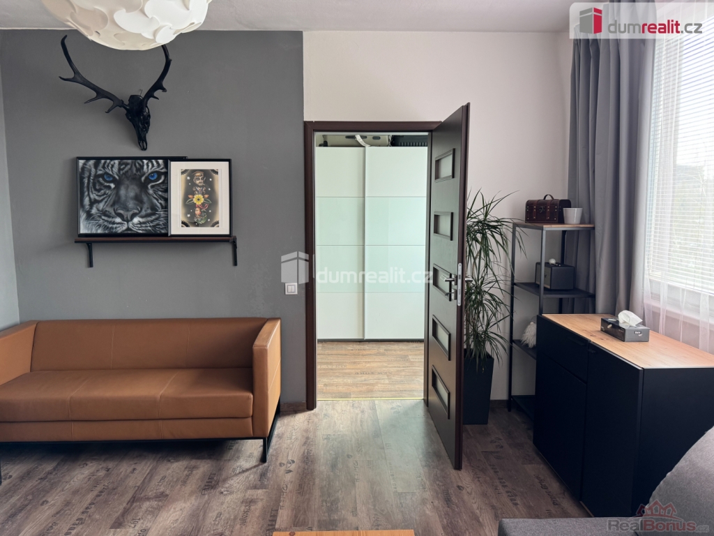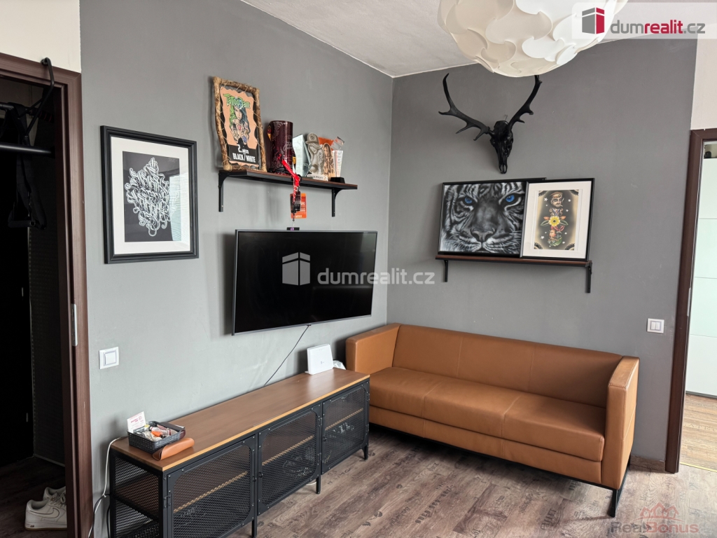 Byt je po kompletní rekonstrukci: výměna oken, interiérových dveří, podlah, vyzděná koupelna se sprchovým koutem, kuchyňská linka se spotřebiči. Jeden velký průchozí pokoj a jeden oddělený. Samostatná kuchyně a předsíň využitelná jako šatna. Sklepní koje je v suterénu domu.