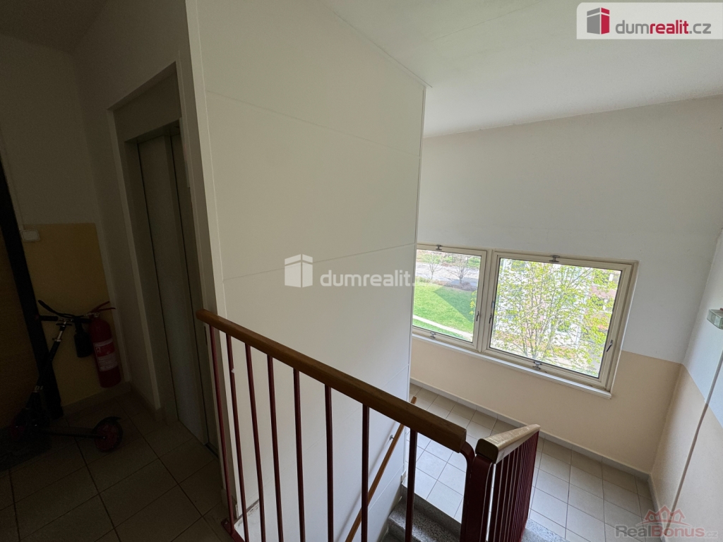 K bytu patří podíl na nezastavěném pozemku o rozloze 17 000 m, na kterém je parková úprava s dětský pískovištěm.