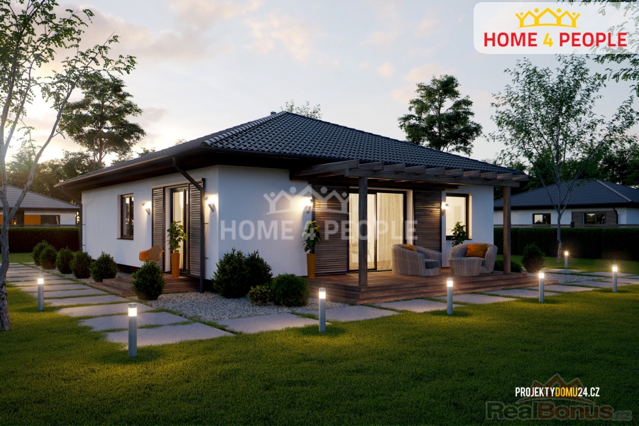 Cena včetně domu na klíč, sítí, přístupové komunikace, pozemku a DPH., Zprostředkujeme Vám výstavbu domu na klíč typ Eko104 4+kk, 125 m na pozemku (č. 21) o velikosti 1129m v Bořenovicích okr. Kroměříž. Bungalov Eko104 je typ rodinného domu vhodný do rovinatého, ale i mírně svažitého terénu. Součásti uvedené ceny, která již zahrnuje DPH je dům na klíč, inženýrské sítě mimo plynu, příjezdová i obslužná komunikace, veřejné osvětlení, chodník, centrální čistička odpadních vod, pozemek a veškeré projektové práce a stavební povolení. Přípojná místa jsou vyvedena na pozemku. Pozemek (číslo 21) je mírně svažitý na klidném místě obce. Šíře pozemku je 21 m. Dle územního plánu je pozemek veden a schválen pro rodinné bydlení a projekt byl schválen zastupitelstvem obce. Zastavěná plocha domu je 125 m s užitnou plochou 104 m. Jedná se o zděnou stavbu a nabízí se ve variantě na klíč. Topení je řešeno nízkonákladovým teplovodním podlahovým topením, tepelné čerpadlo se zásobníkem na teplou vodu 180l. Možnost změnit na jiný typ vytápění s doplatkem dle výběru. Uvedená cena domu obsahuje základovou desku, DPH a stavba bude provedena na klíč a předána po kolaudaci k okamžitému užívání. (Součástí ceny není kuchyňská linka a světla dokážeme za zvýhodněných podmínek zajistit přes naše dodavatele). Možnost změny stavebního materiálu na dřevostavbu s doplatkem nebo přistavit garáž přímo spojenou s domem. Délka výstavby od vydání stavebního povolení, 12 měsíců u dřevostavby a 13 měsíců u zděné varianty. Možnost výstavby pouze hrubé stavby za 2.875.000,-Kč. Obec Bořenovice se nachází v okrese Kroměříž ve Zlínském kraji, zhruba 3,5 km od Holešova, 28 km od Kroměříže a 10 km k dálnici D55. Žije zde cca 210 obyvatel. Základní školu děti navštěvují v sousedním městě Holešov. V obci plné pokrytí signálu LTE, dostupný internet i satelitní vysílání. V obci je obchod se smíšeným zbožím, zajištěna autobusová doprava do Holešova. Omezený počet pozemků pro prodej v tomto roce. Doporučuji prohlídku a to jak samotného pozemku, tak našich rozestavěných domů v okolí. ZTV Bořenovice: https://www.home4people.cz/developerske-projekty/vystavba-domu-na-klic-borenovice-okr-kromeriz_7 Ev. číslo: 29318. Energetický štítek: A (37 kWh/m2/rok).