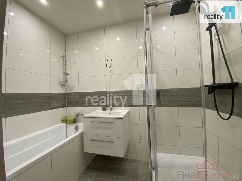 Dispozice bytu: prostorná chodba s šatnou, velká koupelna se sprchovým koutem a vanou, kuchyň s moderní kuchyňskou linkou v bílém lesku- vybavena spotřebiči (vestavěný sporák, sklokeramická deska, digestoř, myčka), obývací pokoj, ložnice s lodžií, dětský pokoj. Příjemné prostředí v bytě vytvářejí snížené stropy s bodovými světly. Po celém bytě nové kvalitní PVC ve stejném dekoru, moderní dveře.
