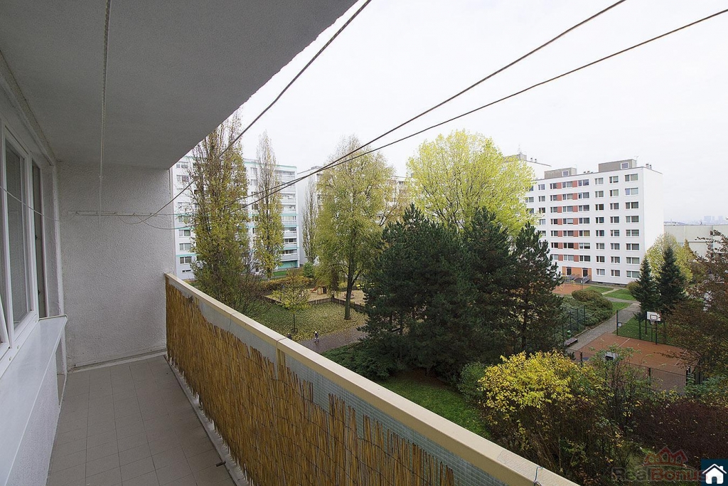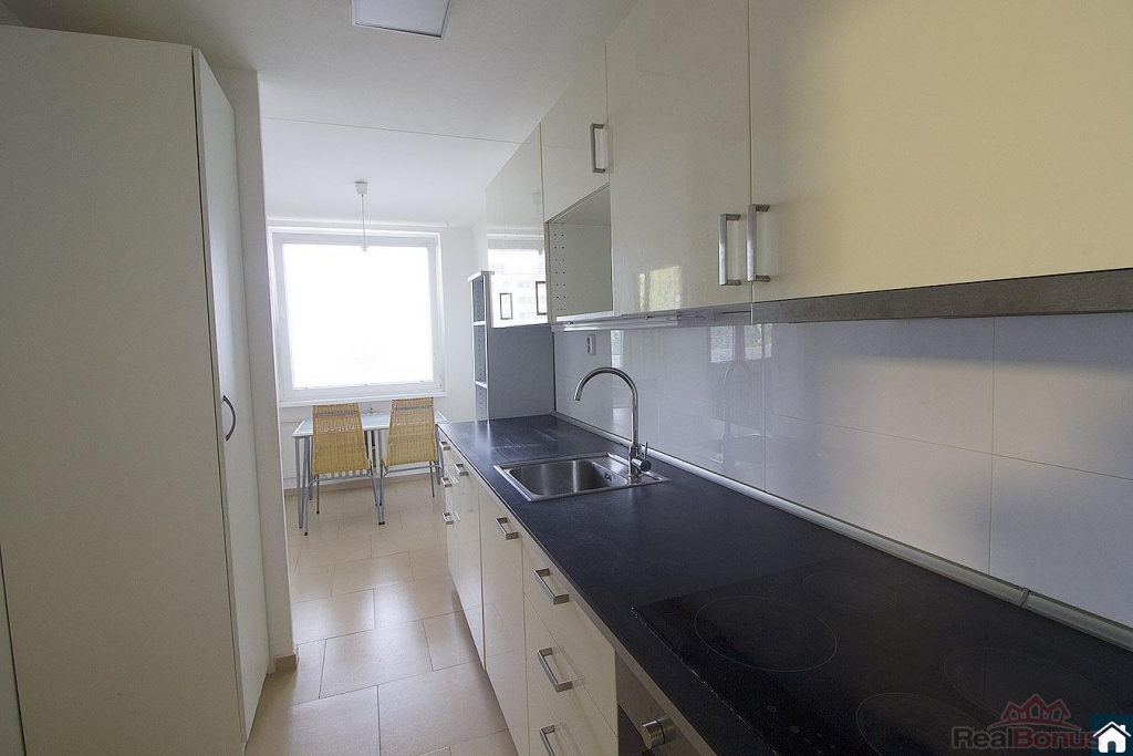 Kuchyně je zařízena kuchyňskou linkou se sporákem s keramickou deskou a jídelním stolem se židlemi. Koupelna je vybavena vanou a WC je samostatné. V bytě je také šatní skříň. Okna jsou situována z kuchyně a obývacího pokoje na východ (lodžie) a obě ložnice na západ. K bytu náleží velký sklep.