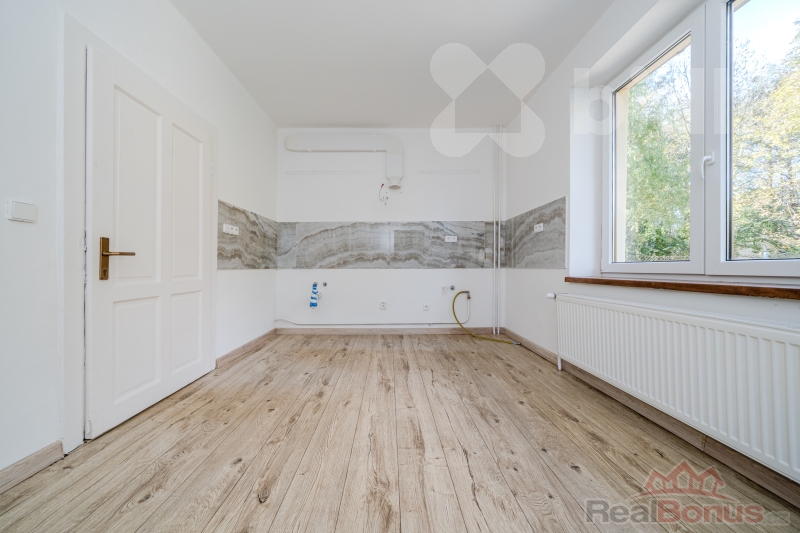 Interiér není zařízen, což umožňuje novým majitelům navrhnout si kuchyň i vybavení ostatních místností podle vlastních představ.