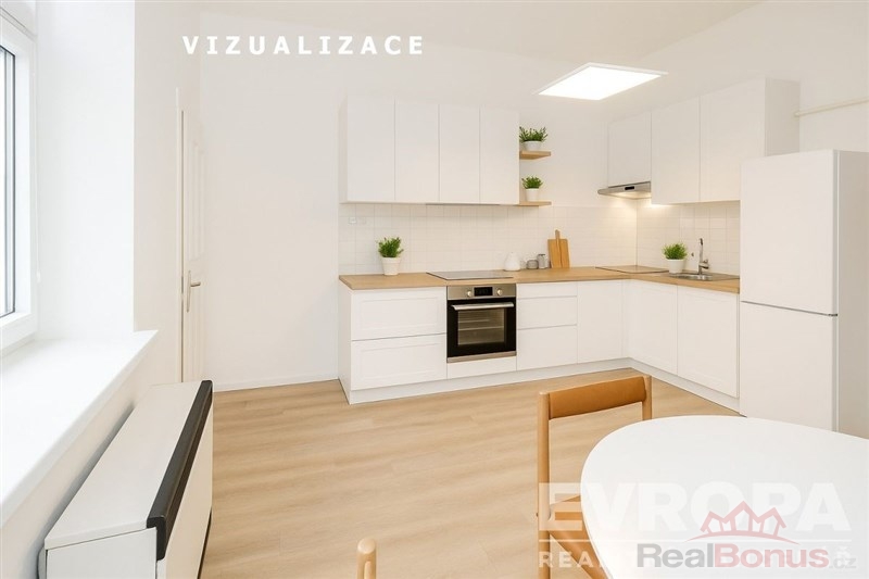 V galerii najdete i vizualizaci jak by mohly vypadat varianty bytu po rekonstrukci 1+1 nebo 2+kk...