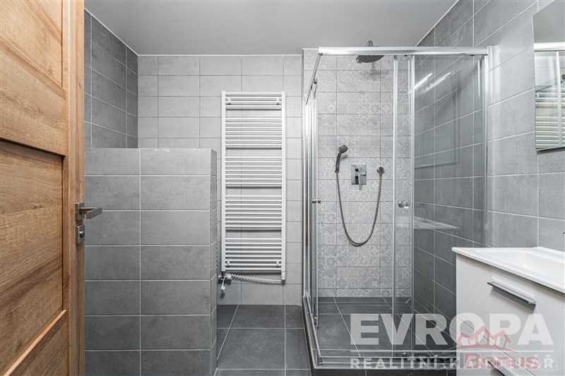 Koupelna disponuje sprchovým koutem a místem pro pračku, byt má kvalitní vinylové podlahy, sádrokartonové podhledy a bezpečnostní protipožární dveře.