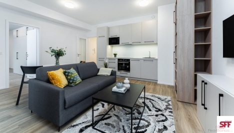 K dlouhodobému pronájmu nabízíme moderní, zcela nové a plně zařízené 2+kk s balkonem, v Praze 9 Vysočany v rezidenci s recepcí a ostrahou.