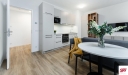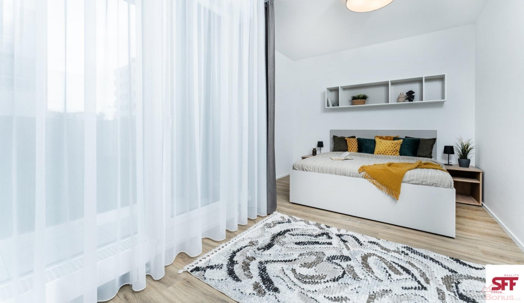 Vybavení bytu: Plně vybavená kuchyně se spotřebiči (mikrovlnná trouba, indukční varná deska, trouba, myčka nádobí, lednice s mrazákem, jídelní stůl a židle, rozkládací pohodlná pohovka, televizor, komfortní postel s matrací (možnost dvoulůžka nebo dvou oddělených postelí vhodné pro spolubydlení), pracovní stůl a židle, šatní skříň.