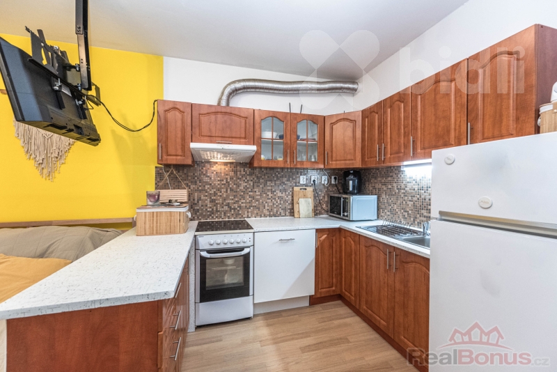 Nabízíme na prodej slunný byt 1+kk 32 m2 s předzahrádkou 28 m2 v přízemí zděného bytového domu v Bytový dům byl postaven v roce 2008 a je umístěn v klidné části obce. Součástí hlavní obytné místnosti je kuchyňská linka.