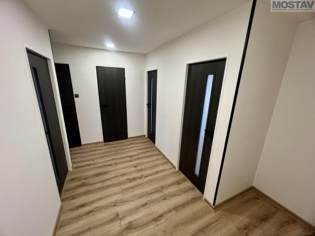 Nabízíme vám světlý a moderně zrekonstruovaný družstevní byt o dispozici 3+1 a výměře 68 m, který se nachází v 7. patře revitalizovaného panelového domu s výtahem. Byt prošel kompletní rekonstrukcí včetně nové elektroinstalace, plovoucích podlah, štuků, snížených stropů, moderní koupelny a WC, stejně jako nových interiérových dveří a bezpečnostních vstupních dveří.