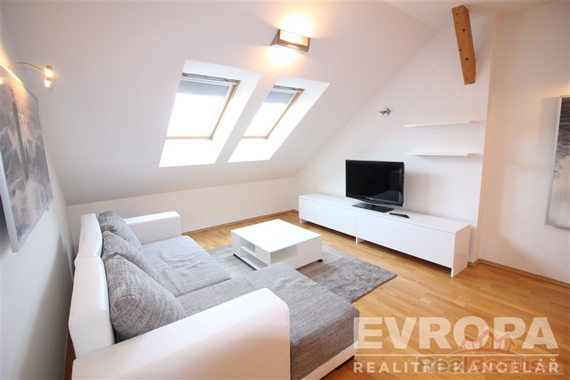 Nabízíme k pronájmu krásný byt, který se nachází ve čtvrtém patře bytového domu. Bytová jednotka byla nově kolaudována v roce 2008 a jedná se o podkrovní byt. Dispozice bytu je 2+kk, skládá se ze vstupní předsíně, prostorného obývacího pokoje, kompletně vybavená kuchyňská linka. Dále samostatná ložnice, doplněná o velkou praktickou šatnu. Velká koupelna s vanou, toaletou a pračkou. Byt je kompletně vybavený, včetně vkusného nábytku, který je na fotografiích.