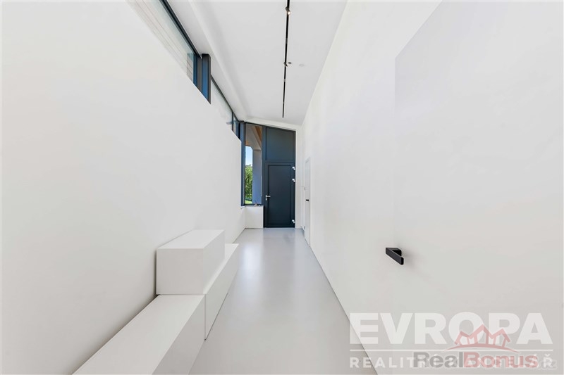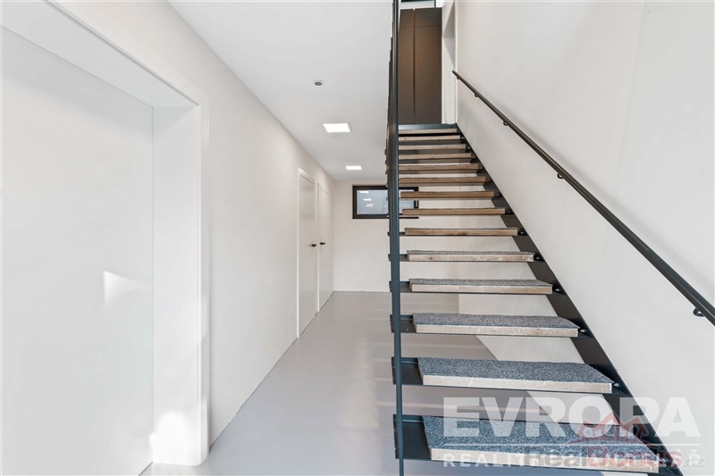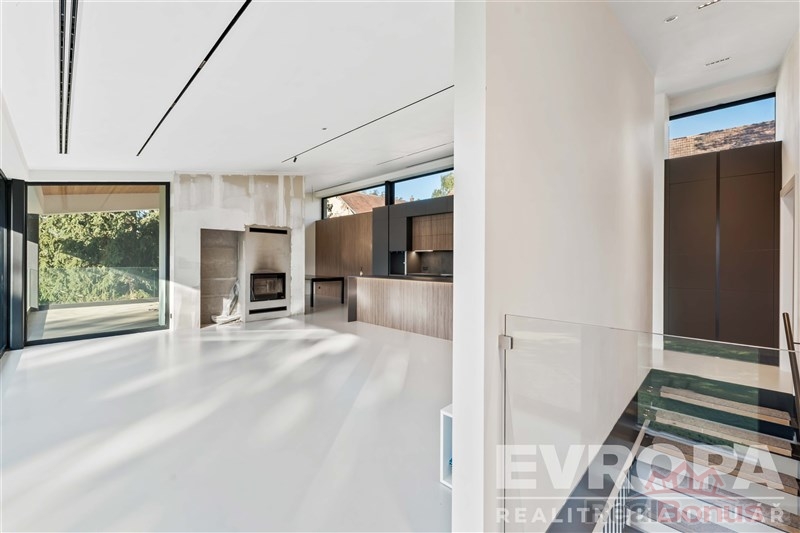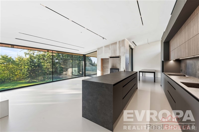 Nadčasový design, bezpečnostní prvky, velkoformátová skla, hliníkové rámy, dodávají interiéru noblesu a vpouští do domu spoustu denního světla.