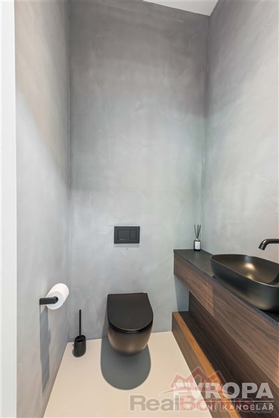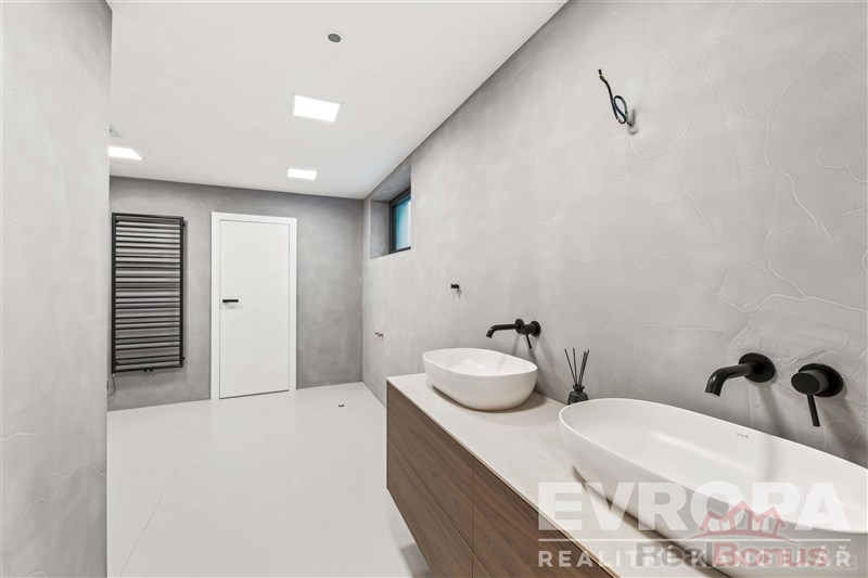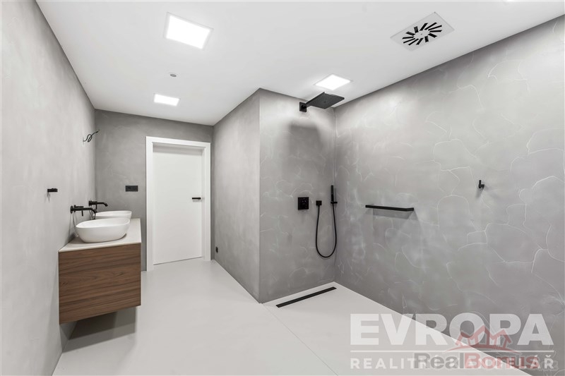 Koupelny splňují nejvyšší standardy, byl zde kladen důraz na praktičnost s vysokou dávkou elegance. Designová sanita, umyvadla na desku, solitérní vana, polyureová stěrka, dřevěný nábytek.