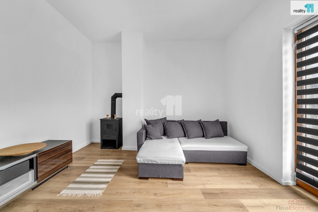 Efektivní vytápění krbem umístěným v hlavní obytné části, který vytváří příjemnou atmosféru a poskytuje zdroj tepla pro zimní, chladné večery.