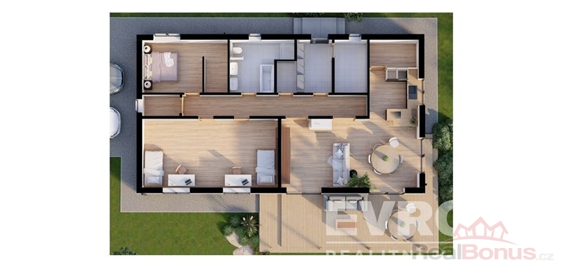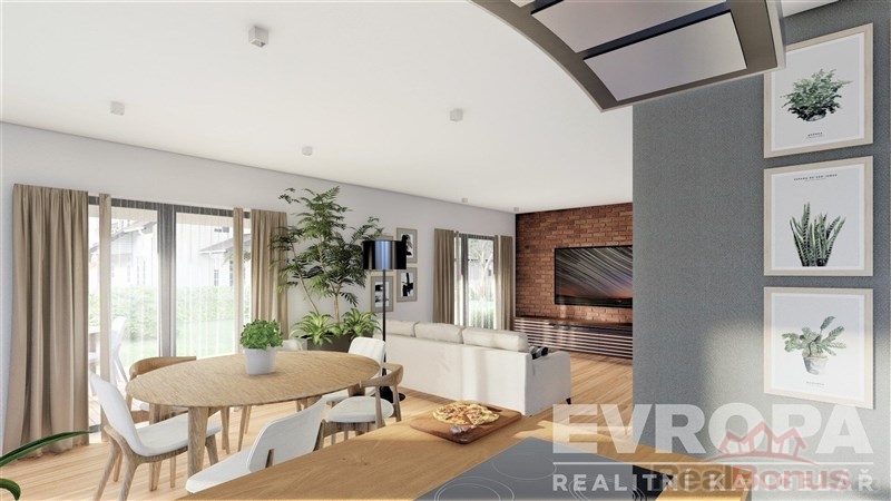 Cena zahrnuje kompletně dokončený a zkolaudovaný dům včetně terénních úprav, zámková dlažba, terasa, parkování a plot, podlahy, obklady a dlažby včetně sanity, masivní dveře a parapety.