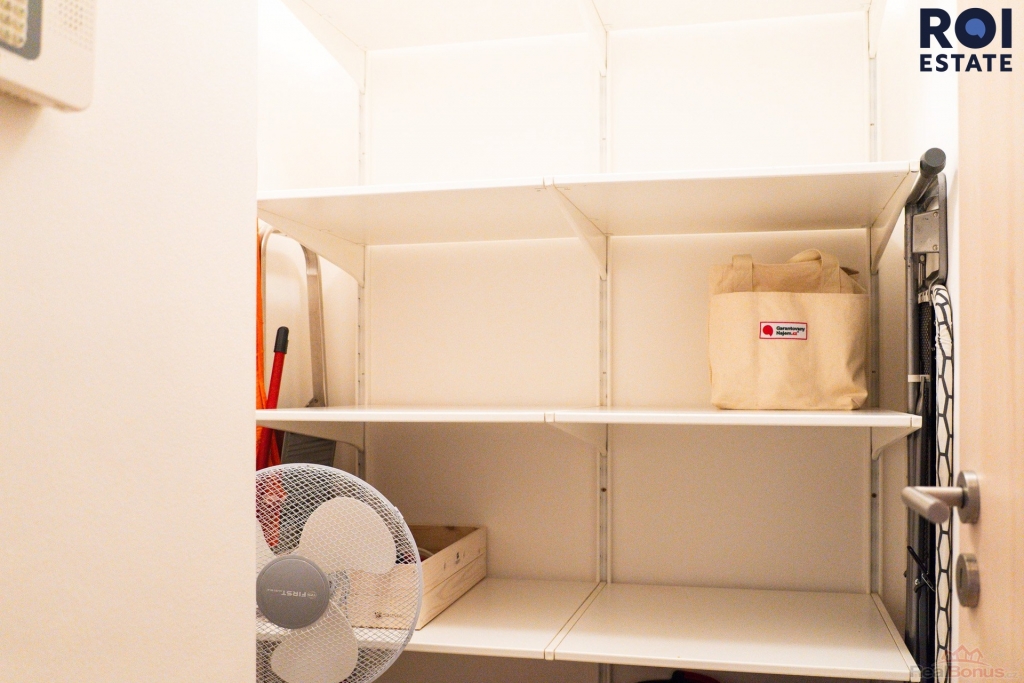 Balkon/terasa/sklep/komora: velká terasa přístupná z obývacího pokoje i ložnice, prostorná komora/šatna uvnitř bytu, sklep ani parkovací stání nejsou součástí, parkování lze pronajmout samostatně.
