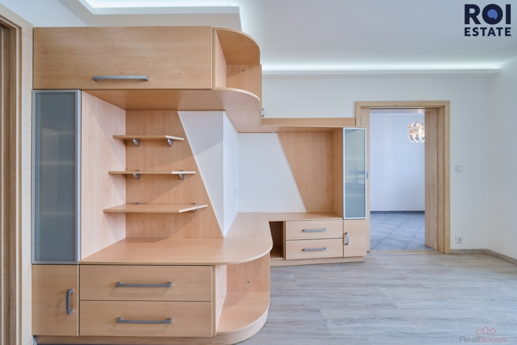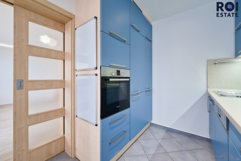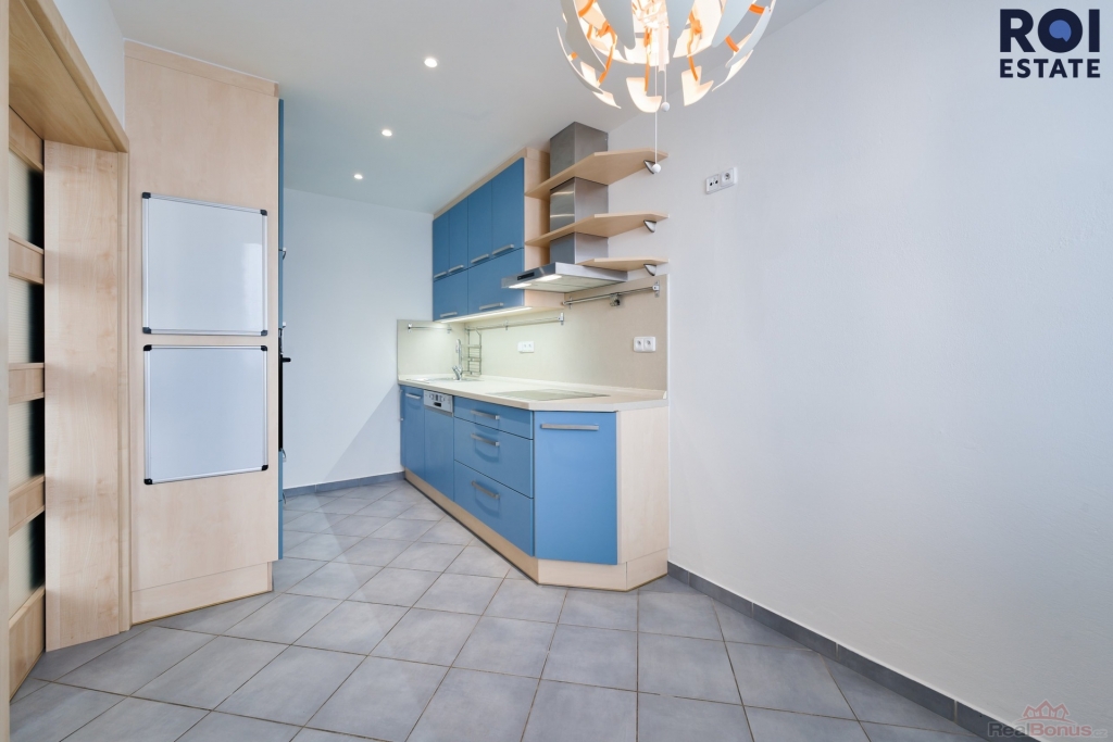 Byt je prakticky řešený ? hlavní ložnice a další tři samostatné pokoje poskytují dostatek místa i pro větší rodinu. Kuchyně je vybavena kuchyňskou linkou na míru, která kromě moderního designu překvapí i množstvím šikovně řešeného úložného prostoru. Samozřejmostí je trouba, digestoř, myčka, lednice s mrazákem i pračka. Kuchyně je propojená s prostorným obývacím pokojem, ze kterého se vychází na balkon orientovaný do klidného vnitrobloku.