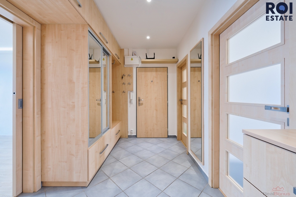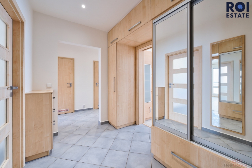 Byt je celkově velmi světlý a příjemný, nezařízený, takže si jej můžete vybavit přesně podle svých představ. Velkým benefitem je i velká komora přímo v bytě, která poskytuje další cenný úložný prostor ? stejně jako vestavěné skříně a dvě oddělené předsíně, které přispívají k výbornému rozvržení bytu. Koupelna a toaleta jsou řešeny odděleně, což je další praktický detail pro každodenní rodinný život.