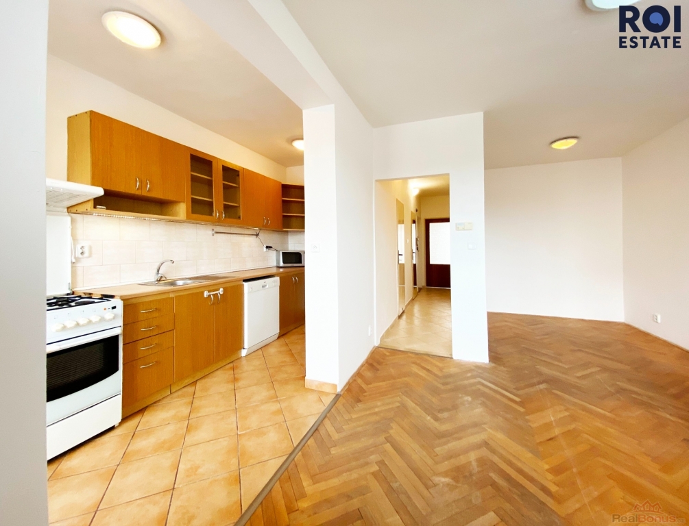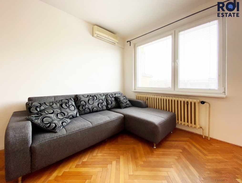 Disponuje hlavní obytnou místností vybavenou pohodlným gaučem. S kuchyní je tento obývací prostor propojen velmi šikovně tak, že při vaření nebudete zavření v samostatné místnosti, ale zároveň je tato část lehce oddělena. Kuchyňská linka je vybavena všemi spotřebiči ? sporákem s troubou, myčkou nádobí i velkou lednicí. Při uskladnění potravin oceníte zabudovanou spíž. Z kuchyně je vstup na prostornější ze dvou balkonů, kterými je tento byt vybaven. Bonusem, který oceníte zejména v nadcházejících letních měsících je vybavení bytu klimatizací, která je osazena v obývací části, s výměníkem umístěným na balkoně.
