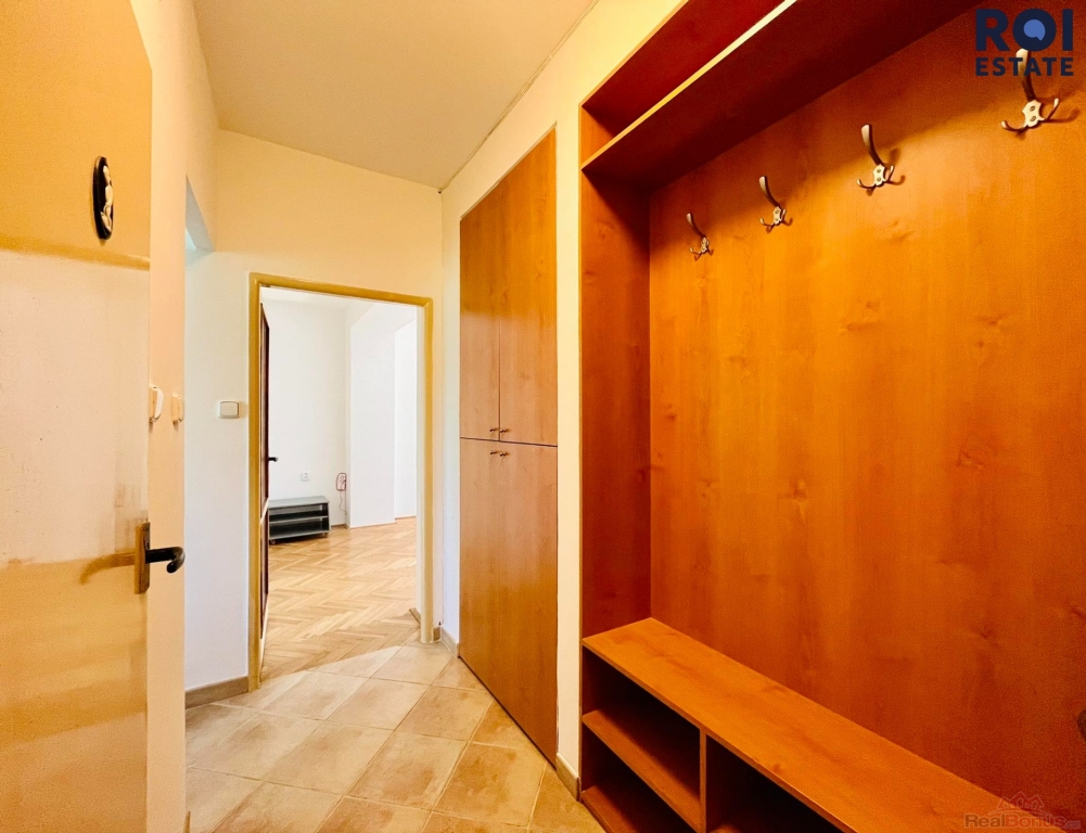 Při vstupu do bytu Vás potěší chodba s úložným prostorem a také věšáková stěna. Po levici je koupelna s toaletou, sprchovým koutem a také pračkou. Chodba nás provede až do kuchyně, kde je skutečně pěkná kuchyňská linka k dispozici včetně spotřebičů jako je myčka, indukční deska, lednička a mrazák, samozřejmě se nezapomnělo ani na menší posezení.