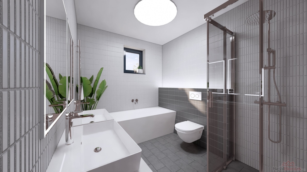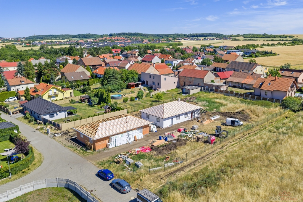 Dům disponuje třemi prostornými ložnicemi, které poskytují dostatek soukromí pro všechny členy rodiny. Koupelna je vybavena moderními sanitárními prvky včetně sprchového koutu a vany a nabízí komfortní zázemí. Obývací pokoj je propojen s kuchyňským koutem a vstupem na terasu s pergolou. Součástí nemovitosti je také garáž, která poskytuje bezpečné parkování a úložný prostor pro další vybavení. V současné chvíli je ještě možné zasáhnout do výběru sanity nebo podlahových krytin. Podlahové vytápění v domě je zajištěno tepelným čerpadlem, stejně tak i ohřev teplé vody, což zaručuje nízké provozní náklady. Obývací pokoj a chodba mezi pokoji jsou osazeny klimatizací. Jedná se o zděnou stavbu se zateplením, PENB B, kolaudace je naplánována na 01/2026. Součástí kupní ceny je oplocení pozemku, zpevněné stání před garáží pro další automobil, automatická elektrická brána, chodníček atd. Kuchyňská linka není součástí kupní ceny.