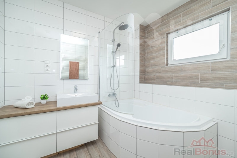 Ve 2. nadzemním podlaží jsou dvě samostatné ložnice a koupelna s vanou a toaletou.
