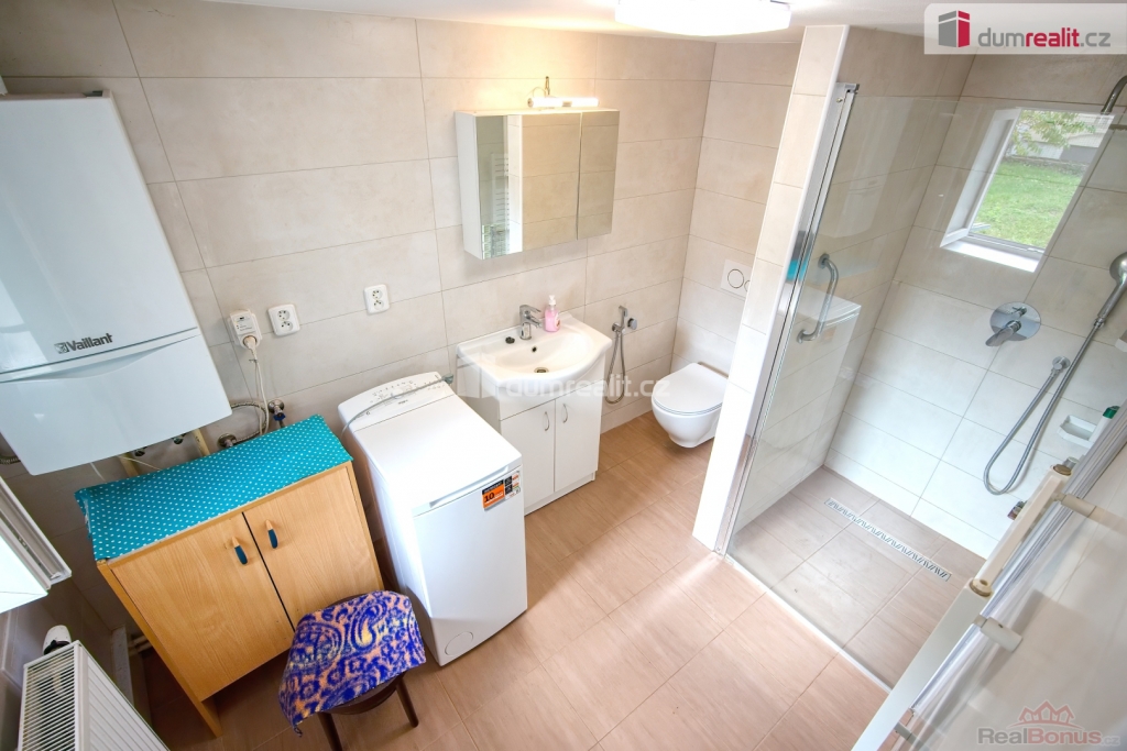 V přízemí naleznete zádveří, chodbu, prostornou kuchyni, jídelnu, útulný obývací pokoj s krbovými kamny, ložnici, moderní koupelnu po rekonstrukci, samostatné WC a komoru. Součástí je i vestavěná garáž a dílna. Na dvoře se nachází praktické kolny pro uložení zahradního vybavení.