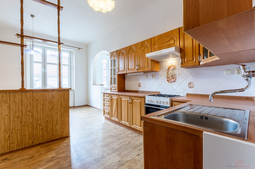 Byt se nachází ve 2. patře cihlového domu v blízkosti centra města s krásným výhledem. Byt prošel rekonstrukcí před 3 lety a je i z většiny vybavený: kuchyňská linka, v chodbě jsou vestavěné skříně. Vytápění bytu je ústředním topením s vlastním plynovým kotlem. Koupelna je velmi prostorná s vanou.