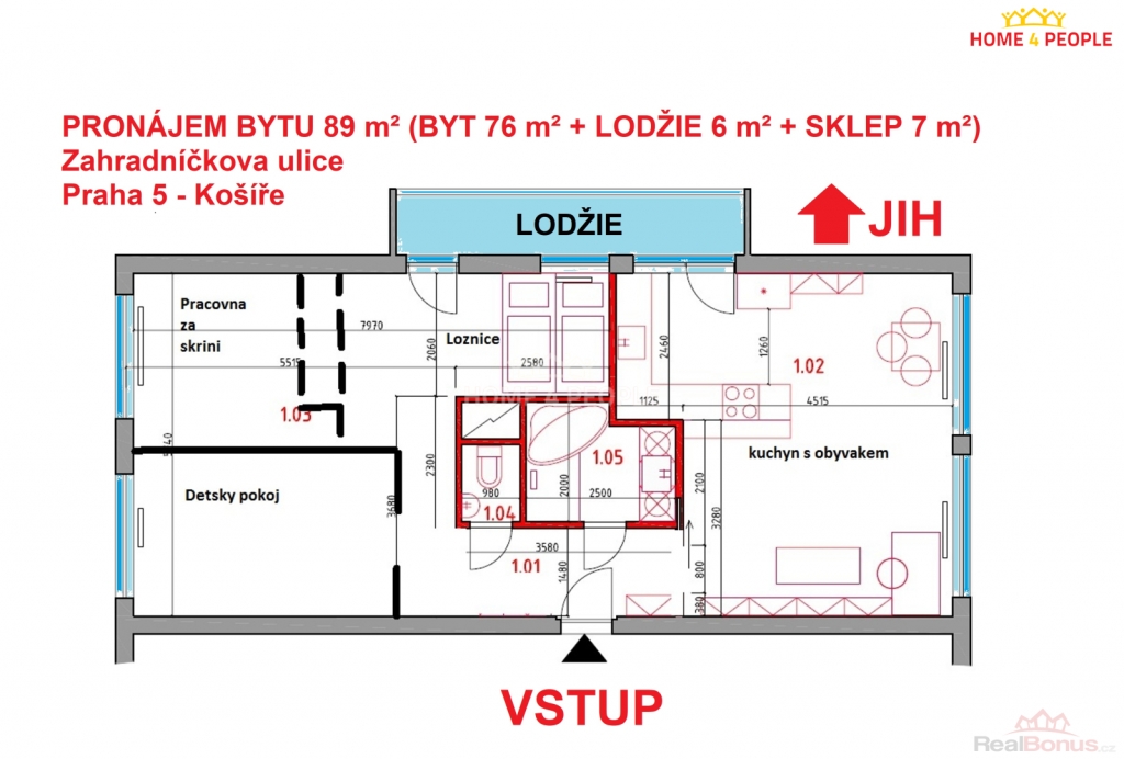 +popl. 7000, , Zprostředkujeme Vám výhradní pronájem velmi pěkného bytu o dispozici 4+kk a celkové podlahové ploše 89 m (BYT 76 m + LODŽIE 6 m + SKLEP 7 m). Byt se nachází ve čtvrtém nadzemním podlaží (3.patro) čtyřpodlažního zatepleného cihlového domu bez výtahu v pražských Košířích, v ulici Zahradníčkova. Byt je v osobním vlastnictví a disponuje třemi ložnicemi, obývacím pokojem s kuchyní, předsíní, koupelnou s vanou a samostatnou toaletou. Z obývacího pokoje a předsíně je možno vstoupit na zasklenou lodžii s výhledem k jihu. V suterénu domu je k dispozici prostorný zděný sklep. V bytě je následující vybavení: kuchyňská linka se spotřebiči - lednice, myčka, mikrovlnná trouba, digestoř, plyn. sporák s el. troubou, sušička. Nová plastová okna se žaluziemi směřující k východu, západu a jihu do zeleně okolo domu, nové radiátory, na podlaze je položena plovoucí podlaha a dlažba, v bytě je rekuperace. Cihlový dům z roku 1986 byl v roce 2016 velmi kvalitně zateplen a v roce 2017 celkově revitalizován - průkaz energetické náročnosti budovy - třída C, byla provedena celková rekonstrukce fasády, střechy, všech rozvodů a chodeb, společenství vlastníků velmi dobře funguje. V domě je zaveden ústřední ohřev vody a tepla - vlastní plynová kotelna v suterénu domu. Je možno užívat společnou kolárnu. Internet je zaveden - O, Vodafone, OPTIKA PE3NYNET a T-MOBILE. Parkování je bezproblémové před domem - modrá zóna. V lokalitě pražských Košíř je veškerá občanská vybavenost: škola, školka, hřiště, kostel, kino, restaurace, lékař, lékárna, pošta, nákupní středisko. Dále se zde nachází park Homolka, lesopark Cibulka, golfové hřiště Motol, motolské rybníky a koupaliště, biotop, tenisové centrum, minigolf atd. MHD - tram - 1 min. pěšky; BUS - 5 min.; Metro B - Anděl 10 min, Metro A Motol 5 min. Je zde krásné a klidné bydlení blízko centra města. Rezervace možná ihned, k nastěhování již od 01.12.2025!!! Doporučujeme osobní prohlídku, komfortní a klidné bydlení vhodné pro rodiny s dětmi. Ev. číslo: 32010. Energetický štítek: C (82 kWh/m2/rok).